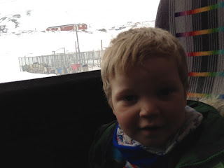 De tre store guttene hoppet på ski rett nedenfor hytta hele lørdagen, før kvelden og sen grillmiddag ble fortært. De to små barna kastet stein i vannet, gikk på tur med mammaene sine og kjørte litt akebrett. Tror også de hadde en fin dag ved Barentsburg.